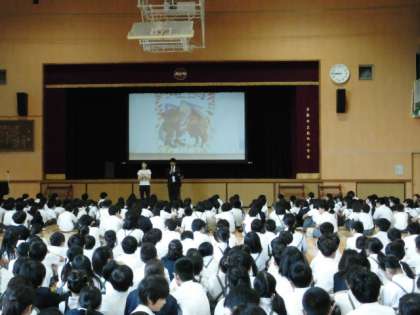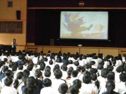 全校朝会の後の1時間目、「いじめについて考える日」の取り組みを行いました。「ごめんねともだち」という絵本の読み聞かせを行い、みんなで友だちの大切さや、素直になることの大事さを考える時間を持ちました。みんな静かに、真剣に聞き入る姿が見られました。