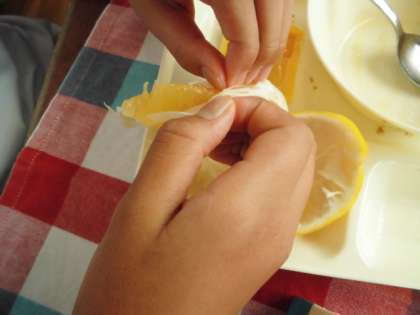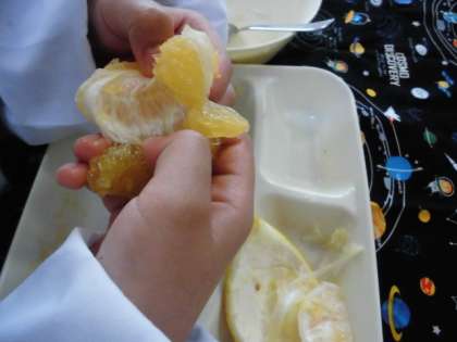 写真は1枚目が1年生、2枚目と3枚目が6年生の様子です。とても上手にむけていました。