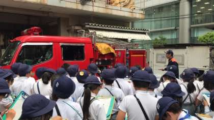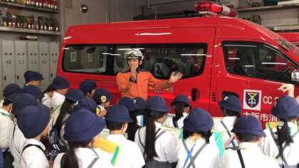 14日(火)に、4年生で、北消防署へ社会見学に行きました。始めにDVD鑑賞をし、消防署内を見学したり、バケツリレーを体験したりしました。私たちの安全を守るために、命がけで働いてくれている様子がよく分かりました。