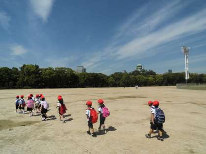 大阪城を見ながら歩き、大きな遊具でもめいっぱい遊びました。