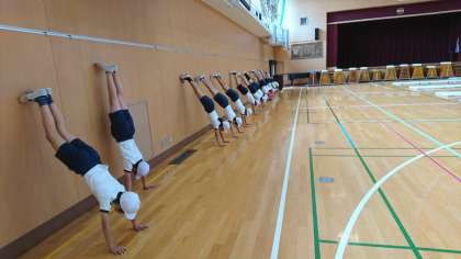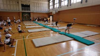 今回は、側方倒立回転(側転)を教えていただきました。難しい技ですが、側転のポイントをわかりやすく教えていただき、少しずつできるようになったきました。今回、教えていただいたことを生かしながらこれから練習をしていきます。