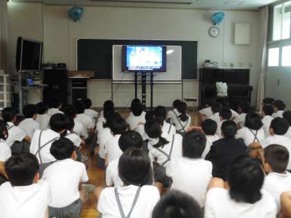 本日2時間目、警察の方に来て頂き非行防止教室を行って頂きました。主にSNSが起因するトラブルや事件、万引きなどについて、色んな事例を交えながらお話やDVDで詳しく学ぶことができました。夏休み中も今日学んだことを頭に置きながら、トラブルのないよう、楽しい夏休みを過ごしてほしいと思います。