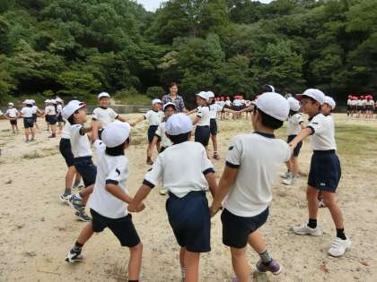 お弁当をおいしく食べた後、4年生と一緒に楽しくゲームをしました。