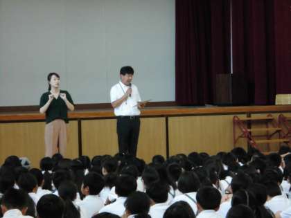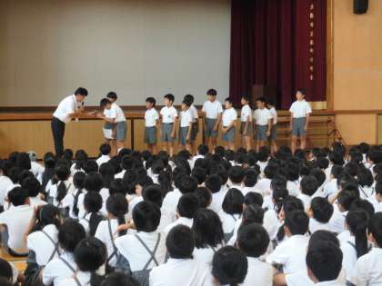 始業式ではどの子も静かに話を聞くことができており、休み時間には、夏休み中にあった出来事や思い出を友だちと楽しく話す姿が見られました。