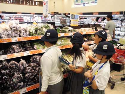 今日は、ライフの方に来ていただきました。食育の学習とライフ太融寺店の見学、買い物ミッションを体験しました。バックヤードの見学では、総菜を作ったり、お肉を保存している冷凍庫に入ったりと、普段見ることのできない場所に行き、驚いていました。食事をバランスよく取る大切さと、働く人たちの努力や工夫を知ることができました。