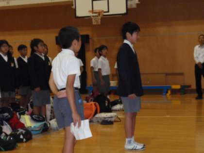 最後に児童代表のあいさつをし、お迎えのみなさんに「ただいま!」と丁寧にあいさつができました。