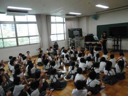 最後に教育実習で来ている先生にサックスの演奏をしてもらい、みんなでさんぽやパプリカを歌って楽しい時間を過ごしました。