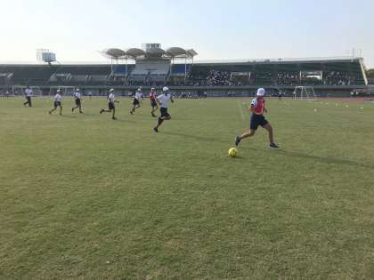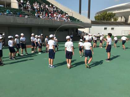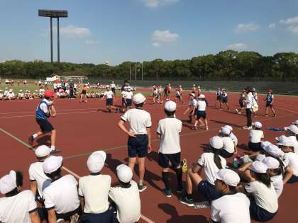 昼食を食べて長縄で遊んだあと、午後は第2陸上競技場でドッジボールとサッカーをしました。