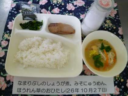 なまりぶしのしょうが煮は、焼き物機を使って温度管理し、ふっくらと煮ています。みそにゅうめんは、ボリュームがあり、食べごたえがありました。