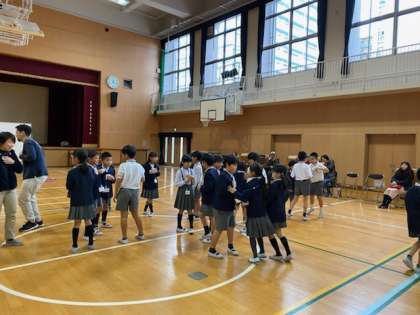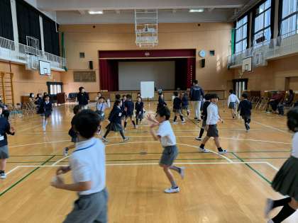 講堂での活動ということもあり、子どもたちは広い空間で体を動かしながら、楽しく取り組むことができました。