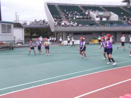 北区の6年生が集まり、午前中は100m走や4×100mリレーを行い、午後からはドッジボールやサッカーを行いました。みんな、とても楽しんでいました。