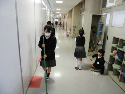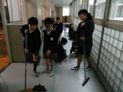 今週は、ピカピカ週間として、今年度最後の友だちグループ清掃を行いました。普段と違ったメンバーで、普段と違った場所を掃除することで、学校中がピカピカになりました。高学年が低学年に優しく掃除の仕方を教えている姿も見られました。