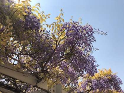 2つめは おうぎまちしょうがっこうに さいている 「フジ」の ちかくを いつも とんでいる むしは なんでしょう?