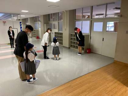 本日、9時30分より行われました1年1組・4組の「入学にかかるオリエンテーション」の様子です。校長先生のお話、担任紹介、学校生活についてのお話の後、教室と靴箱の場所を確認しました。