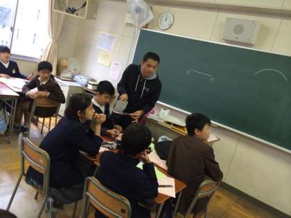 26日(水)に、天満中学校へ授業体験に行きました。はじめに、生徒会の方から学校や部活動の説明を受け、その後、選んだ教科の授業を受けました。中学校の先生から教えていただきながら、楽しく授業することができました。