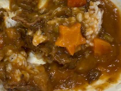 今日のハヤシライスには、星やハートの形をした「ラッキーにんじん」が入っていました。見つけることはできたでしょうか?