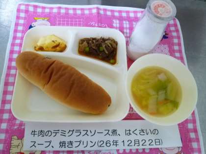 いよいよ明後日、24日の給食が今年最後の給食になりました。さばのみぞれかけ、おおさかしろな(天満菜)の煮びたしの献立です。お楽しみに。