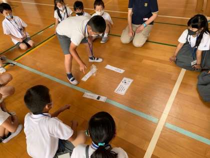 今日は、第2回目の外国語体験活動でした。キンダーキッズから、ダニエル先生たちが来てくださり、英語の学習をしました。