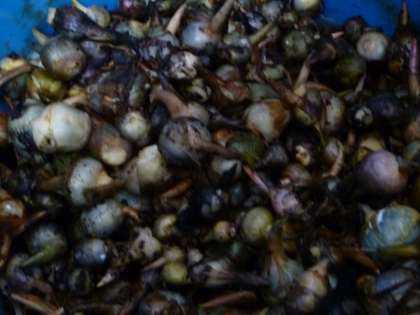 6月から育てていたなにわの伝統野菜、吹田くわいを、3年生が収穫しました。