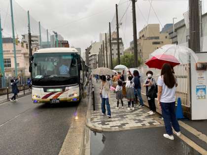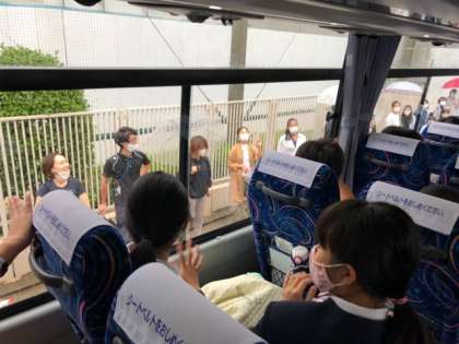 出発はあいにくの雨ですが、沢山の保護者と教職員に見送っていただき、元気に出発しました!