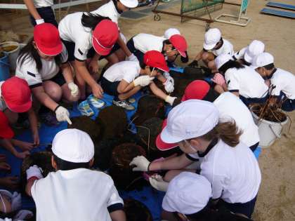 1月9日(金)に、5月に植えたなにわの伝統野菜『吹田くわい』を収穫しました。根っこの先に小さいくわいや大きいくわいがたくさんついていて、芽を折らないようにそっととりました。3年生みんなで合計で200個以上収穫できました。