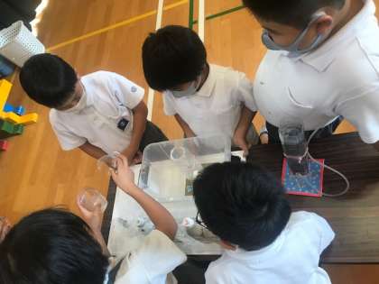 今日は柴島浄水場の方が、出前授業をして下さりました。途中でろ過の実験をしました。濁った水が・・・どんどんきれいになっていきます。これには、みんなもびっくり!!!