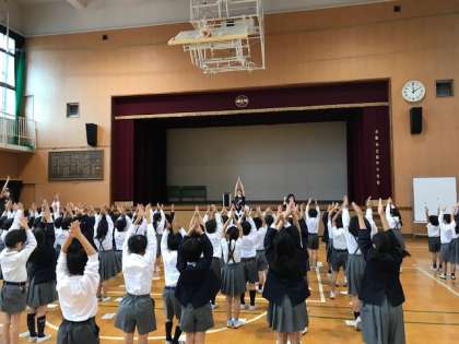 学年便りの名前「ぐんぐん」は、1年生の合言葉です。みんなで、ぐんぐんのポーズをしました。