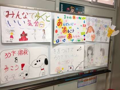 代表委員会の児童が、もっとみんなが廊下、階段を歩くようになってほしいと話し合いを進めていました。そして、学級でも話し合いをしてもらい、ポスターや看板を作って啓発することになりました。みんなが安全に楽しく過ごすことができる学校になるように、今後も話し合いを続けていきたいと思います。