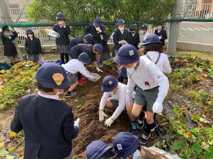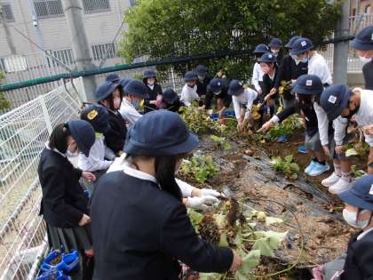 今日は、3組と4組の子どもたちが生活科の時間においもほりをしました。