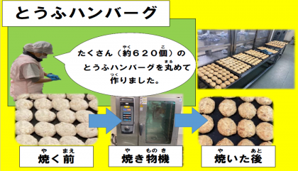 とうふ、ツナ、たまねぎなどを混ぜ合わせて、1つひとつ調理員さんが丸めてくださっています。その数、620個以上!とても大変です。