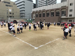 12月14日(月)に、1年生のみんなでドッジボール大会をしました。1クラス2チームに分かれて、試合をしました。みんな相手をよく見て、ボールをよけたり、狙ったりしていました。勝ったチームも負けたチームも一生懸命頑張りました。