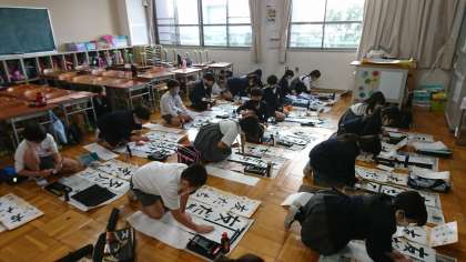 8日(金)の5・6時間目に書き初めをしました。子どもたちは、初めての大きな半紙に戸惑いながら、一生懸命に書くことができました。