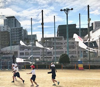 先日、生活科の昔遊びでたこあげをしました。自分が作ったたこがあがったときには、「わあ、すごい!!!」と言って、みんなうれしそうでした。たこあげには、風が関係していると、気付くことができました。