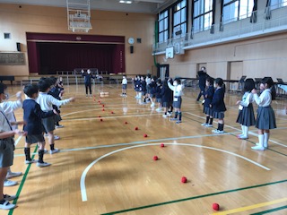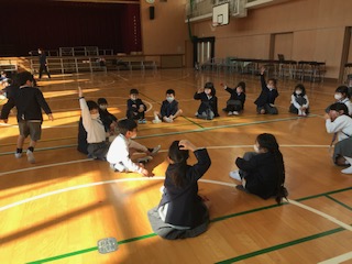 先日の外国語活動では「her」と「his」をうまく使い分けて、ハンカチ落としに似た遊びやキャッチボールなどをして遊びました。ドキドキ、わくわくしながら楽しく活動することができました。