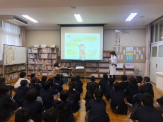 今日は3時間目と4時間目に、薬剤師の先生に話をしていただく「お薬講座」がありました。前半は病院で処方されたり薬局で購入したりする「お薬」について、飲み方や用法・用量を守ることの大切さについての話を聞きました。後半は、いわゆる「薬物」についてのお話で、薬物の恐ろしさや決して近づいてはいけないということについて学びました。どちらもとても大切なことなので、これからも覚えておいてほしいと思います。