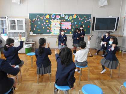 6年生を囲んで、楽しくゲームをしたり、みんなからのプレゼントをわたしたりして楽しい時間を過ごしました。