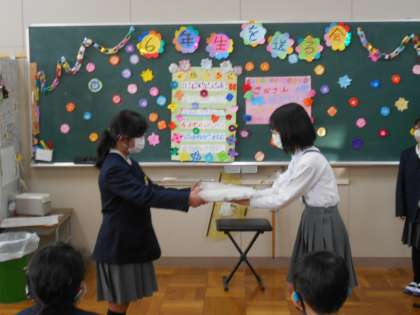 「いつもやさしくしてくれてありがとう」「中学校に行ってもがんばってね」などが書かれたメッセージカードを受け取って、6年生もとても喜んでくれました。