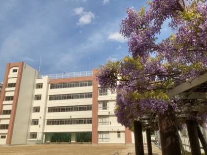 下の写真は運動場の藤棚の藤の花です。入学式の記念写真でも大人気でしたが、今が真っ盛りとなっております。ぜひ一度ご覧ください。