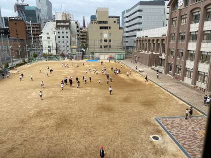 新しい校舎から運動場を見下ろすと、運動場が広くなったように感じます。子どもたちにはこれまで以上に積極的に外で遊び、健康で丈夫な体づくりにつながればと思います。