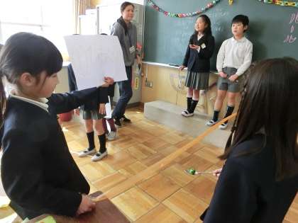 『スプーンリレー』は、スプーンの上にボールを乗せ、落とさないようにコースを回り、班の合計タイムを競います。みんなタイムを縮めることができるように、集中してボールを運んでいました。