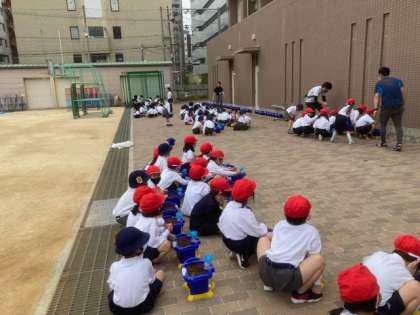 生活科の学習としてアサガオの種植えを行いました。少し天気があやしくなってきていましたが、みんな先生のお話を聞きながら、鉢に土を入れたり種を植えたりと真剣な様子でした。その後は「早く芽が出てね」などの声をかけながら一生懸命水やりをしていましたよ。これからも世話を続けてみんな立派なアサガオが咲けばいいなと思っています。