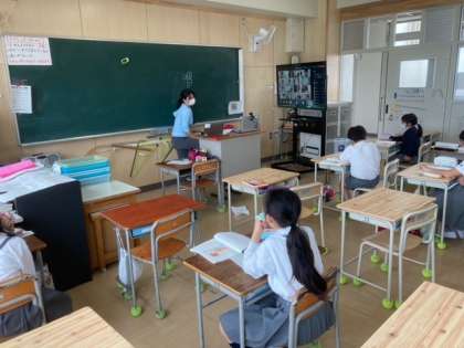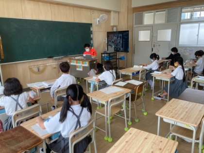 4年生は国語の学習ということで、説明文の段落分けをしたり、問いを探したりと、対面授業で行われているような形式の学習をオンライン授業で実施しました。オンラインでの学習について、各学年で試行錯誤しながら、児童の学びの保障につなげていきます。