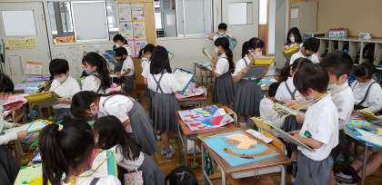 その後の作品の鑑賞では、お互いの作品の工夫したところやいいところをたくさん見つけることができました。