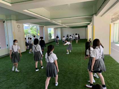 運動場で遊ぶ姿もあれば、6年生はピロティーで本を読んだり、だるまさんが転んだをしたり、歴史トランプで遊んだりして楽しんでいました。ピロティーに通る風が気持ちよく過ごしやすい1日でした。