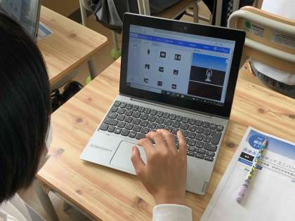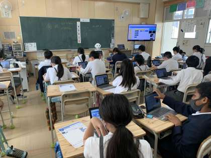 今年度最初のプログラミング学習がありました。昨年度に引き続きペッパー君にさせるプログラムを考え、様々な課題に取り組みます。今日は、ユニバーサルデザインについて考え、画像を表示しながらペッパー君に説明をさせるプログラムをつくりました。「ソーシャルディスタンスを保とう。」や「水分補給をしよう。」など、画像と音声を合わせて伝えることができました。