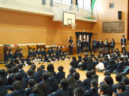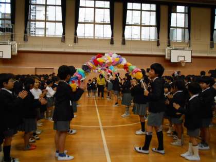 4月13日(月)2時間目に、1年生おめでとう集会を行いました。昨年度の代表委員の児童が司会進行をし、クイズをしたりジャンケンゲームをしたりしながら楽しみ、2〜6年までの児童が1年生をあたたかく迎えました。