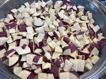 今日のみそ汁には、さつまいも、とうふ、こまつな、にんじん、もやし、えのきたけが入っています。そろそろ、さつまいもが美味しくなる時期ですね。