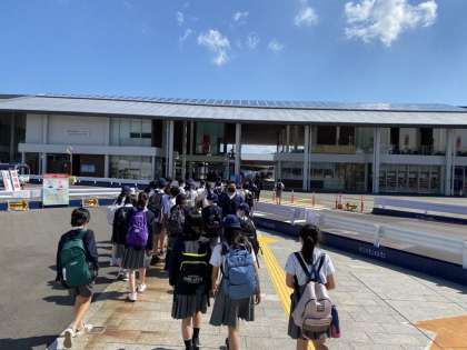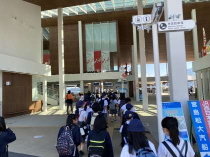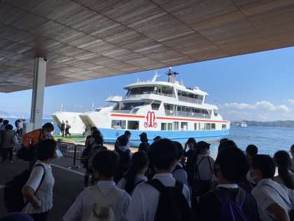バスを降り、さっそく宮島行きのフェリー乗り場へ向かいます!