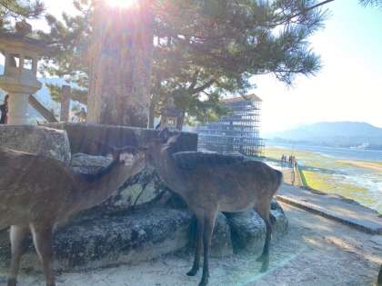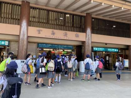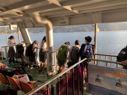 楽しく活動した宮島を後にして、再びフェリーに乗ります。到着後はバスに乗り換えて、広島市内の宿舎を目指します!