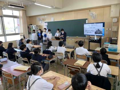 今日は6年生が4年生に平和学習の発表を行いました。先日参観でリハーサルを行い、修正したものを発表しました。下級生への発表は2回目になりますが、発表の仕方が上手くなっている児童が多かったです。今回の発表で4年生に戦争の悲惨さ平和の大切さなど伝わっていたらいいなと思います。週明けには5.6年生で自然体験学習です。5年生を引っ張りまとめ、楽しく活動しましょう。